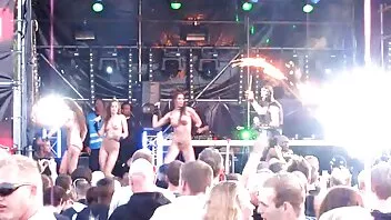 Một người đàn ông vui xem sec hoang thuy linh mừng một cô gái khỏa thân và đập anh ta